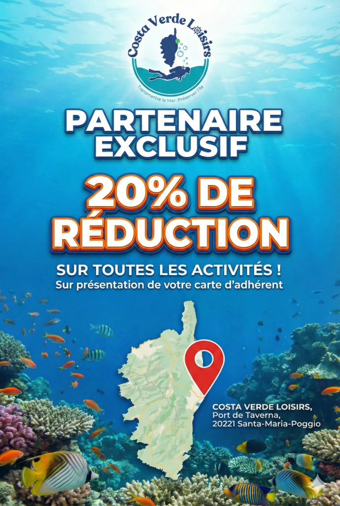 C'est avec un immense plaisir que nous vous dévoilons notre nouveau partenaire : Costa Verde Loisirs. Fidèles à leur belle devise "Transmettre la Mer. Préserver l'Île", ils vous invitent à découvrir les richesses de la Méditerranée tout en les respectant. Une occasion rêvée de faire le plein de sensations !